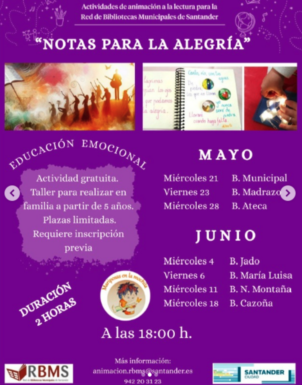 Más información: llamando al 942 203 123 y en el correo electrónico: animacion.rbms@santander.es