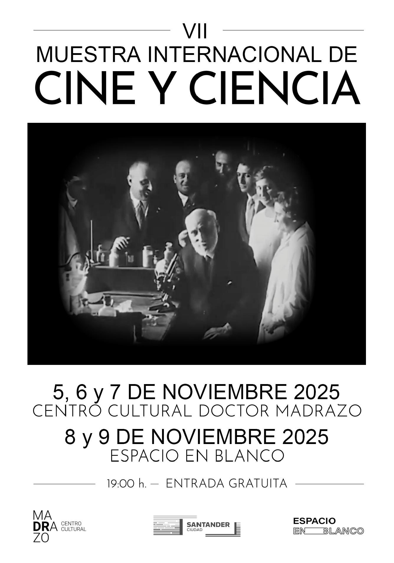 Del 5 al 9 de noviembre tendrá lugar la VII Muestra Internacional de Cine y Ciencia. Se trata de un evento cinematográfico en el que tiene cabida cualquier trabajo relacionado con la ciencia y la divulgación científica. Las proyecciones tendrán lugar los días 5, 6 y 7 en el Centro Cultural Doctor Madrazo, y los días 8 y 9 en Espacio en Blanco. Todas las sesiones comenzarán a las 19:00 h.