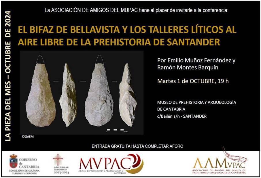 El ciclo La Pieza del Mes que organiza la Asociación de Amigos del MUPAC, se detiene este mes de octubre en "El Bifaz de Bellavista y los talleres líticos al aire libre de la prehistoria de Santander".