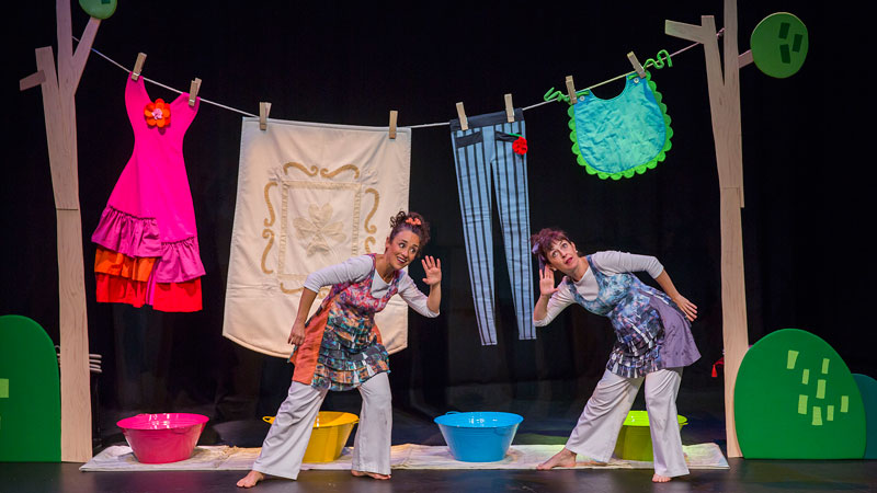 Las protagonistas de esta historia tienen por costumbre colocar baldes debajo de la ropa tendida con la intención de recoger los ritmos que esconden las gotas de agua que caen de ella. Un vestido de flores (chachachá), un mantel refinado y elegante (vals), un pantalón de rayas (tango) y un babero (el silencio) serán los protagonistas. Pero… ¡qué casualidad!, la única gota que cae del babero se pierde bajo la Tierra y habrá que buscarla en… África, quizá una charca sea su capricho… Asia, quizá un río le sirva de cobijo… Europa, quizá el Mediterráneo sea su destino…