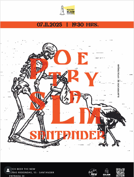 La tercera cita de la temporada 25/26 de Poetry Slam Santander tendrá lugar el viernes 7 de noviembre de 2025 a las 19:30 horas en Rock Beer The New (Calle Peñas Redondas 15, Santander).