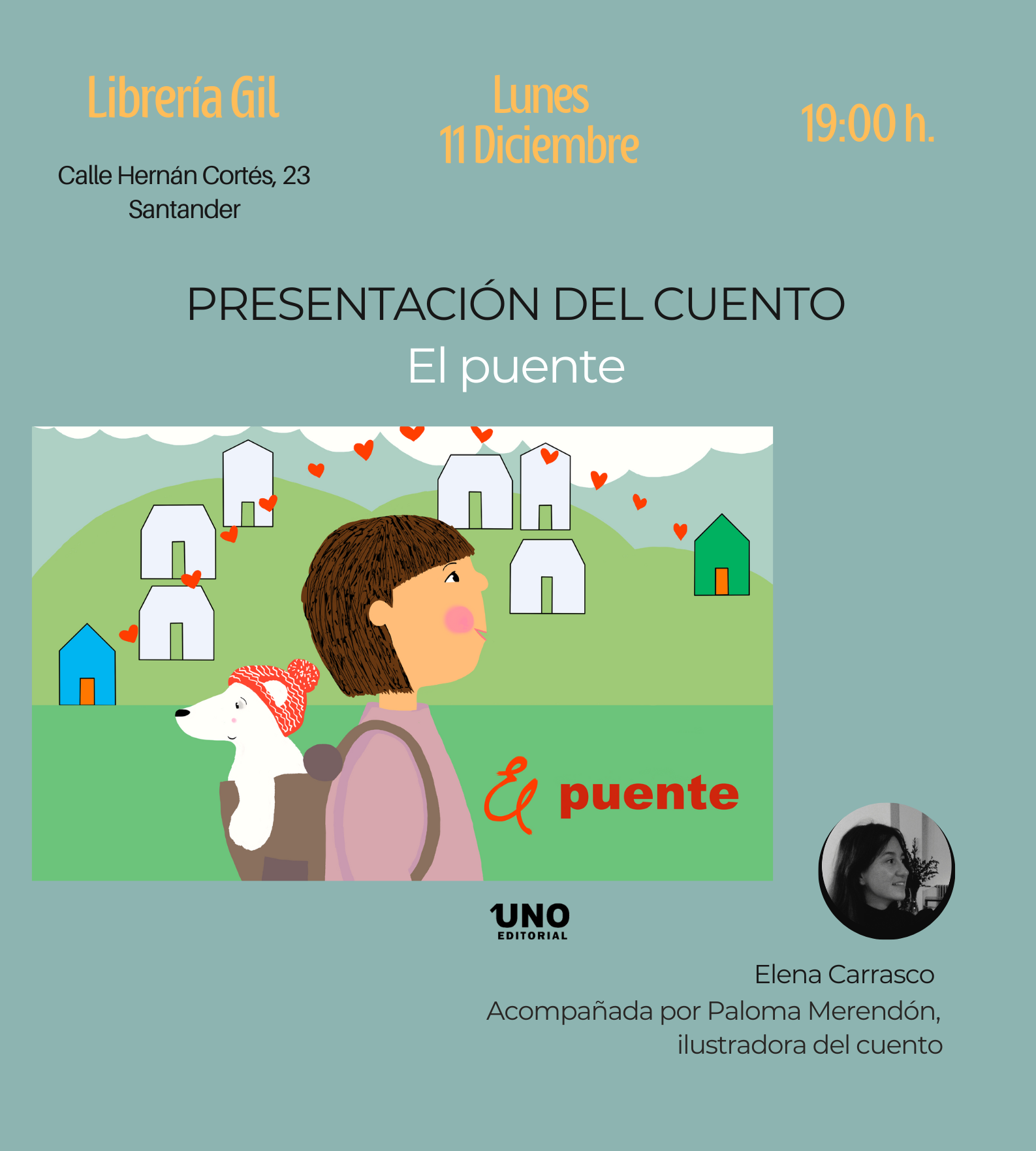 El lunes 11 de diciembre a las 19:00 h, la Librería Gil de la plaza de Pombo acoge la presentación del cuento “El Puente”, escrito por Elena Carrasco. La autora estará acompañada por Paloma Merendón, ilustradora del cuento.