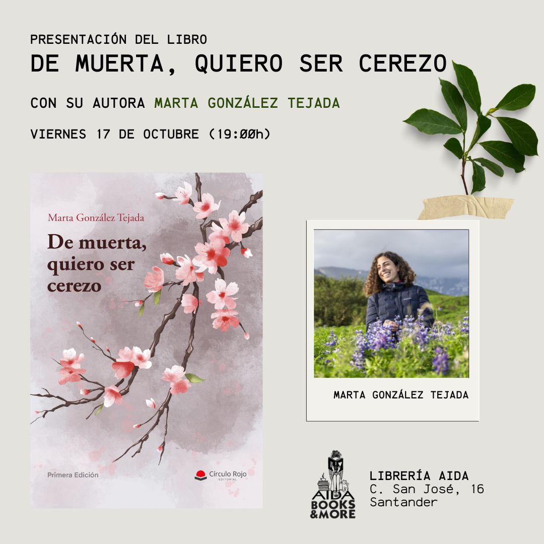 Presentación del libro "De muerta, quiero ser cerezo", de Marta González Tejada el viernes 17 de octubre a las 19.00h en Aida Books& More.