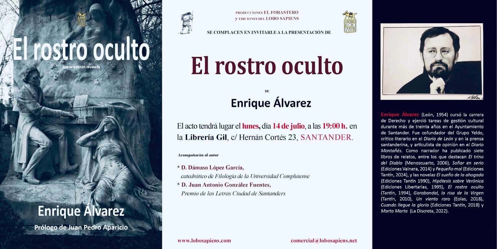 El lunes 14 de julio a las 19:00h, Enrique Álvarez presenta su libro “El rostro oculto” en la Librería Gil de la Plaza de Pombo. El autor estará acompañado por Dámaso López García, catedrático de Filología de la Universidad Complutense, y Juan Antonio González Fuentes, Premio de las Letras Ciudad de Santander.