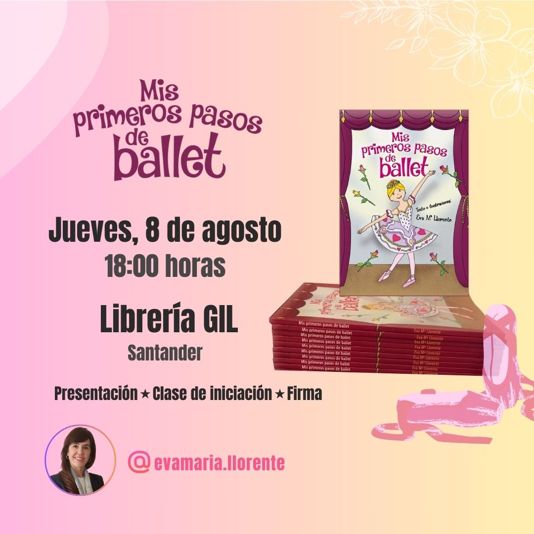 El jueves 8 de agosto, a las 18:00 h. la Librería Gil de la Plaza de Pombo acoge la presentación de “Mis primeros pasos de ballet”, de Eva María Llorente. Además, los asistentes aprenderán algunas nociones básicas de ballet en una divertida clase con la propia autora. De 4 a 11 años.