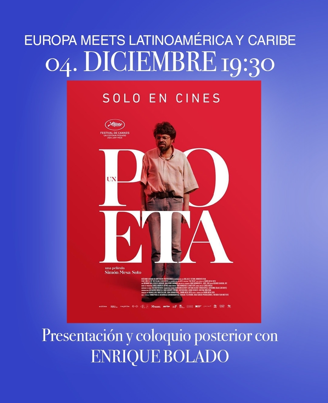 En colaboración con Europa Cinema, el cine Embajadores ofrece un pase especial de la película “Un poeta”, dirigida por Simón Mesa Soto, elegida por la Academia Colombiana de Cine para representar a ese país a los Oscar.