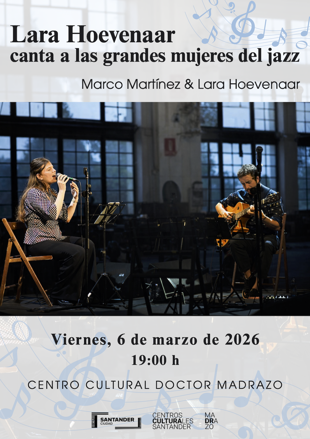 El viernes 6 de marzo, a las 19:00 h, el centro cultural Doctor Madrazo acogerá el recital «Lara Hoevenaar canta a las grandes mujeres del jazz», a cargo del dúo Lara Hoevenaar & Marco Martínez.