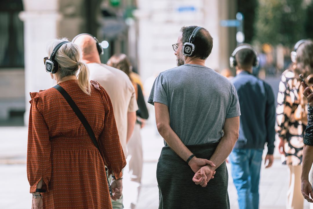 Tres historias escritas por tres autores locales, para ser escuchadas a través de unos cascos inalámbricos, en una narración sonora en los mismos lugares a los que hacen referencia los textos. La propuesta es ya un clásico de Hágase la Luz y ofrece una experiencia sensorial rica y envolvente, proporcionando una conexión con el entorno a la que no estamos acostumbrados, consiguiendo que los participantes vean y sientan el lugar de una manera completamente nueva.