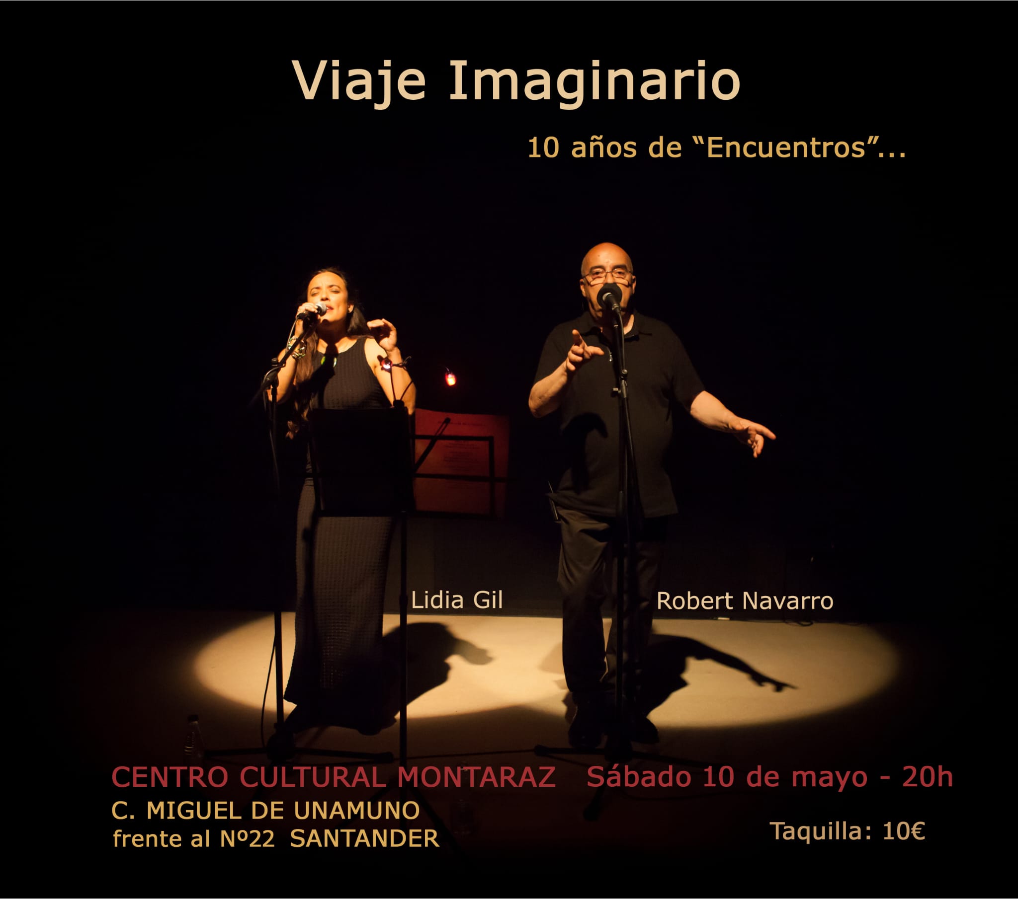 Después de Encuentros (2015), Demonios y maravillas (2017), 10.000 kilómetros (2019) y Gloria Amor Humor (2022), Robert Navarro y Lidia Gil presentan El viaje imaginario, un nuevo espectáculo musical cantado a dúo que reúne poemas de varios autores de diferentes épocas y lugares que aportan su particular e íntima visión del mundo.