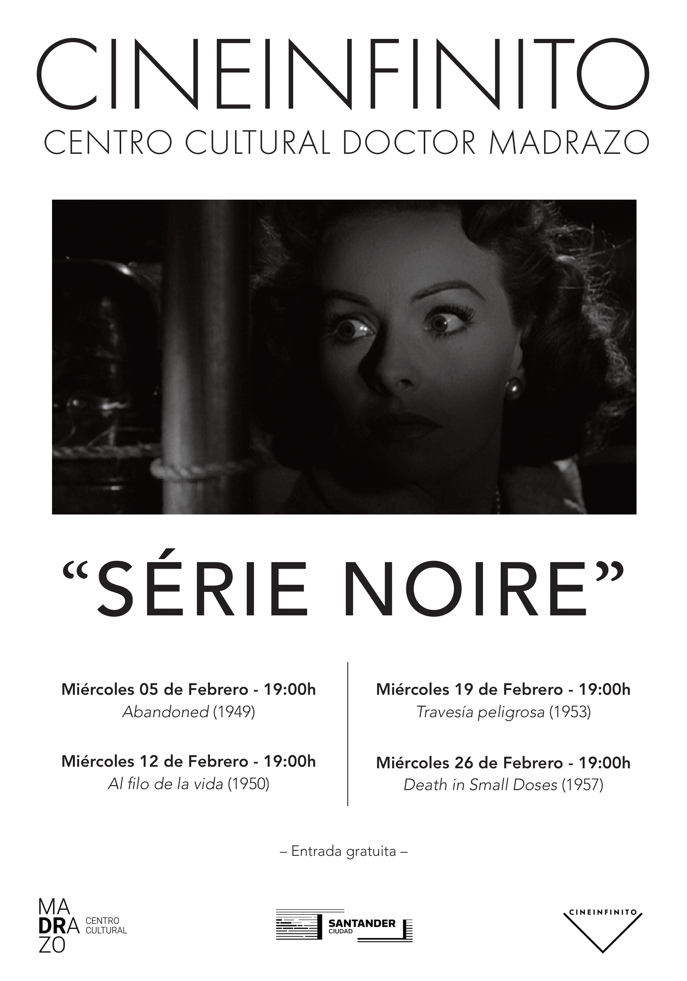 El Centro Cultural Dr. Madrazo y la asociación Cineinfinito han programado un nuevo ciclo de cine clásico. El ciclo, titulado "Série Noire", consta de cuatro películas que tendrán lugar los miércoles de febrero, a las 19:00 h.