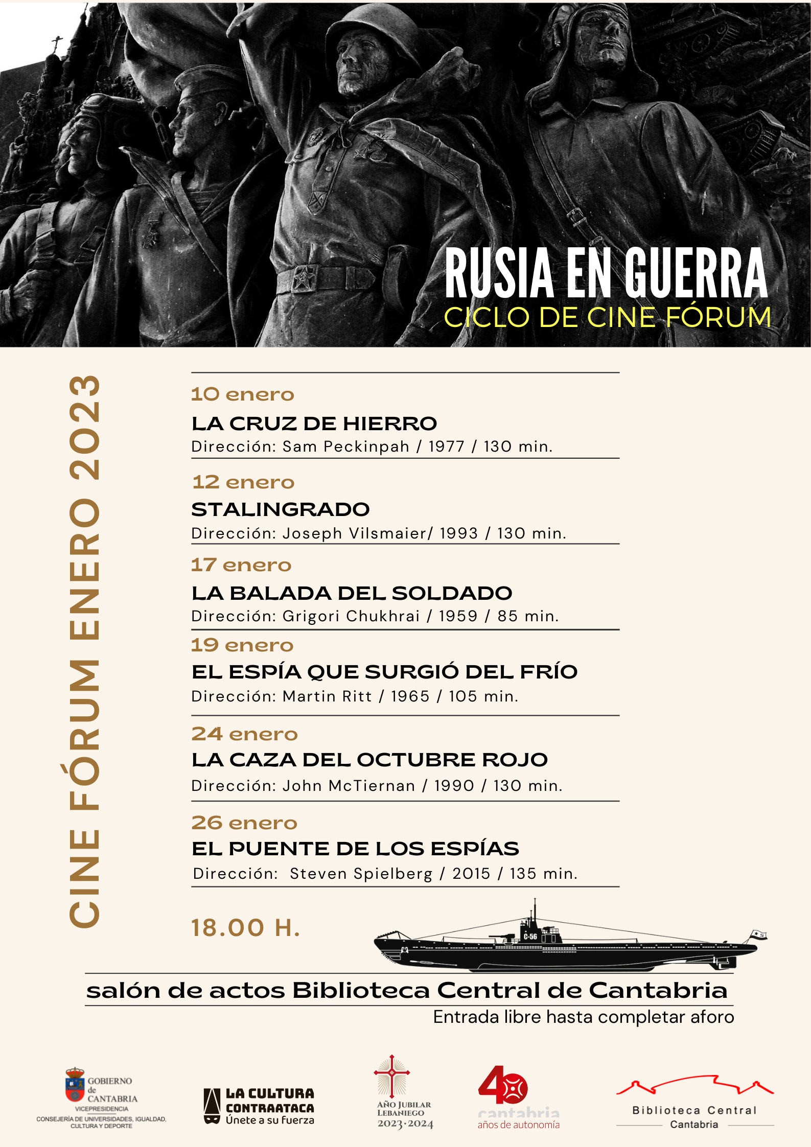 “Rusia en guerra” es el título del ciclo de cine fórum que la BCC ha programado para el mes de enero. A través de seis proyecciones, se pretende acercar a los espectadores el papel de Rusia en dos destacados conflictos internacionales como fueron la Segunda Guerra Mundial y la Guerra fría.