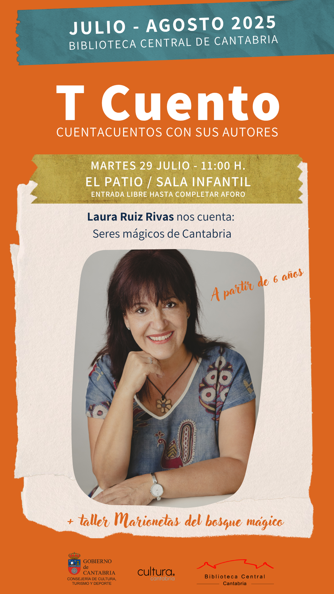 El martes 29 de julio Laura Ruiz Rivas nos cuenta “Seres mágicos de Cantabria”. Cuentacuentos y taller para niñas y niños a partir de 6 años.