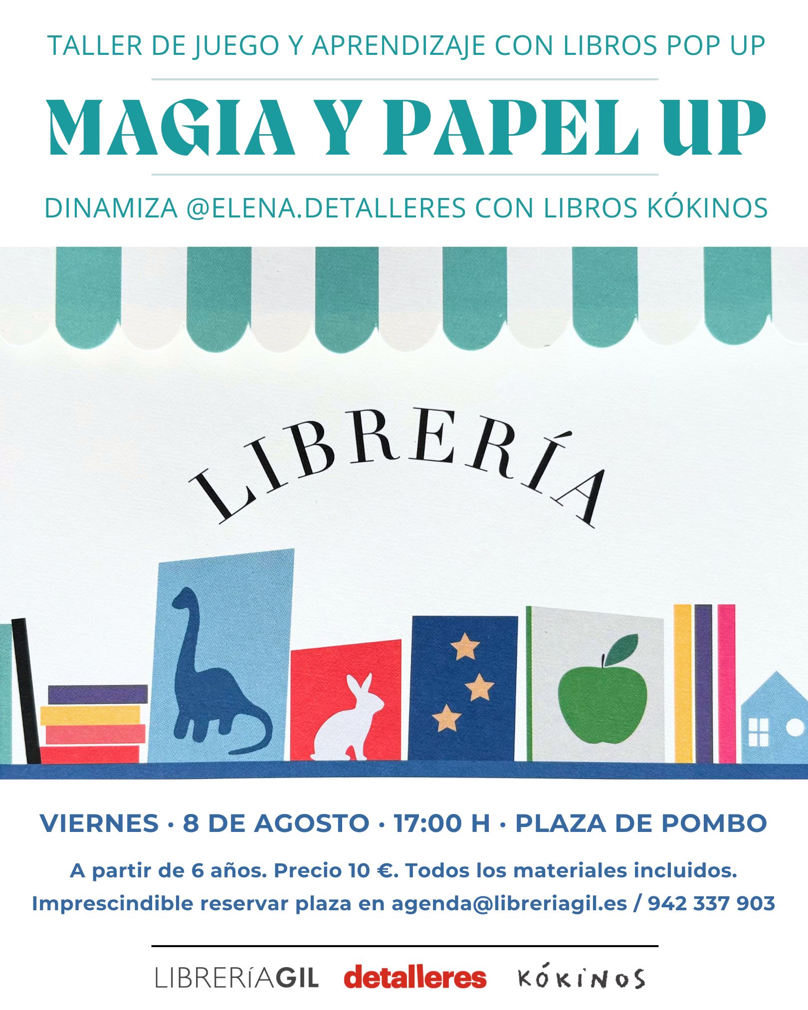 El viernes 8 de agosto a las 17:00 h., en la librería Gil de la Plaza Pombo, tendrá lugar un taller de juego y aprendizaje con libros pop up “Magia y Papel Up”. Dinamizado por Elena Detalleres con libros de la editorial Kókinos.