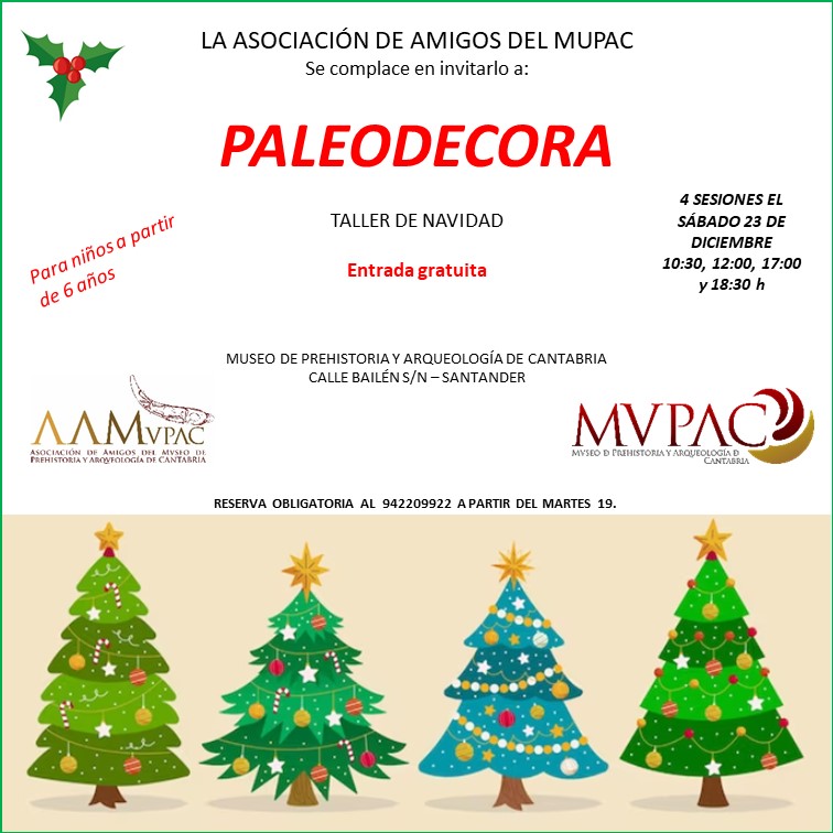 La Asociación Amigos del Museo de Prehistoria y Arqueología de Cantabria organiza el taller infantil de Navidad “Paleodecora”.