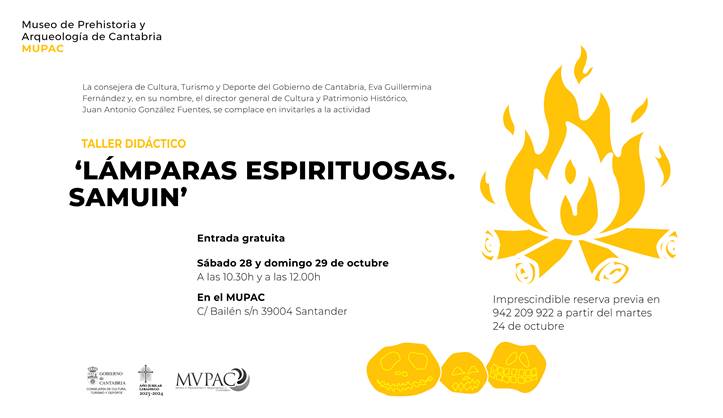 El Museo de Prehistoria y Arqueología (MUPAC) organiza el taller "Lámparas espirituosas. Samuin" los días 28 y 29 de octubre. Los participantes crearán una lámpara de estilo espectral con tubérculos vaciados y decorados con motivos siniestros, siguiendo la antigua tradición celta.