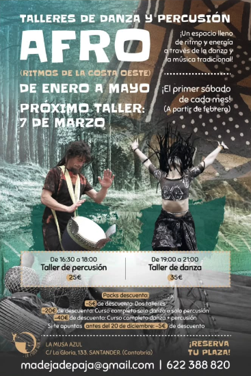 Precio: 25€ taller percusión // 35€ taller danza