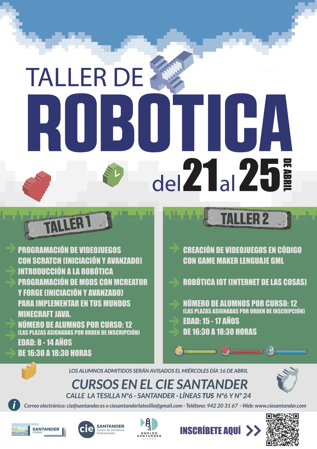 El Ayuntamiento de Santander ha programado para las vacaciones escolares de Semana Santa dos talleres gratuitos de programación y robótica para escolares de entre 8 y a 17 años procedentes de colegios e institutos de la ciudad y que residan en el municipio.