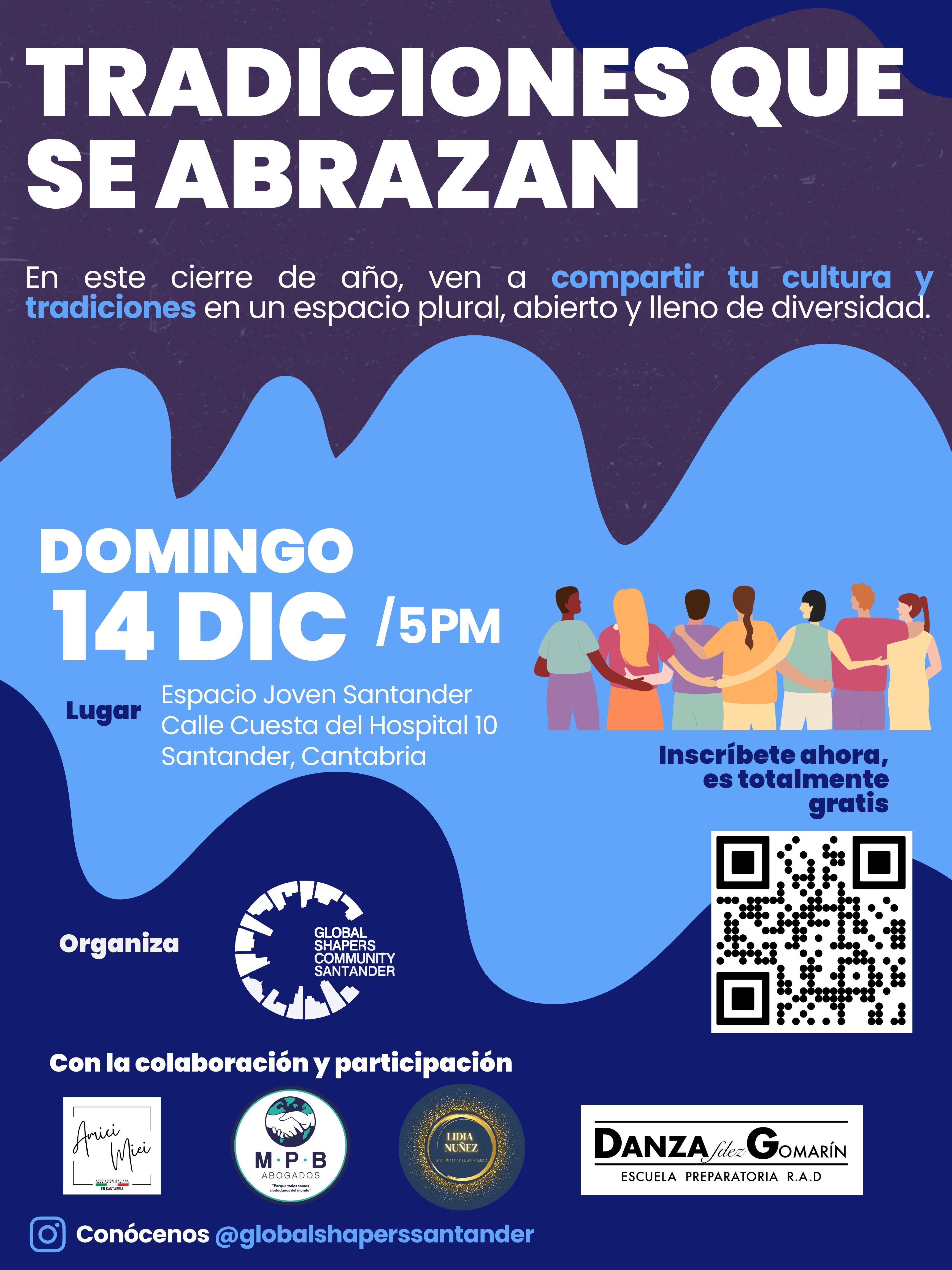 La Asociación Juvenil Global Shapers Santander organiza un encuentro intercultural para conmemorar el Día Internacional del Migrante bajo el título “Tradiciones que se abrazan”. Un espacio de encuentro entre culturas locales y migrantes en Cantabria que tendrá lugar el domingo 14 de diciembre a las 17:00h en Espacio Joven.