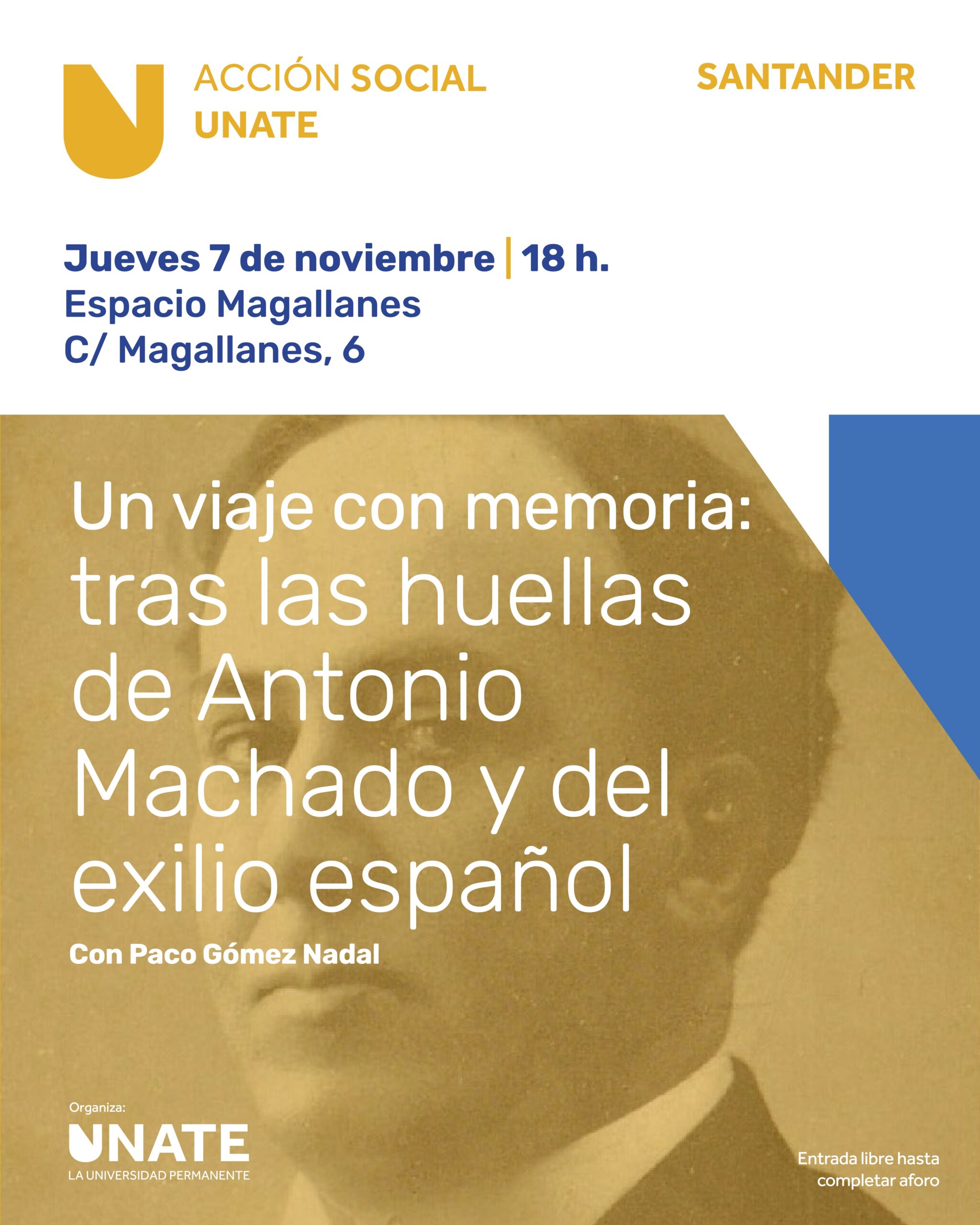 “Un viaje con memoria: tras las huellas de Antonio Machado y el exilio español”, conferencia a cargo de Paco Gómez Nadal, periodista y coordinador del Grupo Social UNATE.