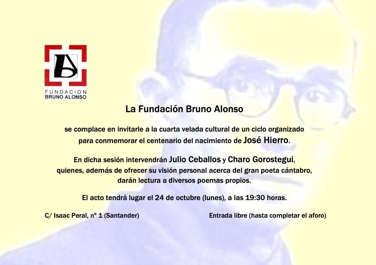 La Fundación Bruno Alonso organiza la cuarta velada cultural para conmemorar el centenario del nacimiento de José Hierro.