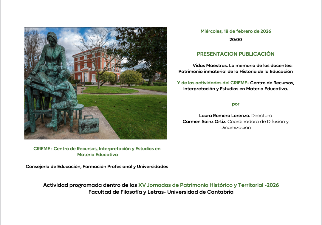 20:00 PRESENTACION PUBLICACIÓN: Vidas Maestras. La memoria de los docentes: Patrimonio inmaterial de la Historia de la Educación