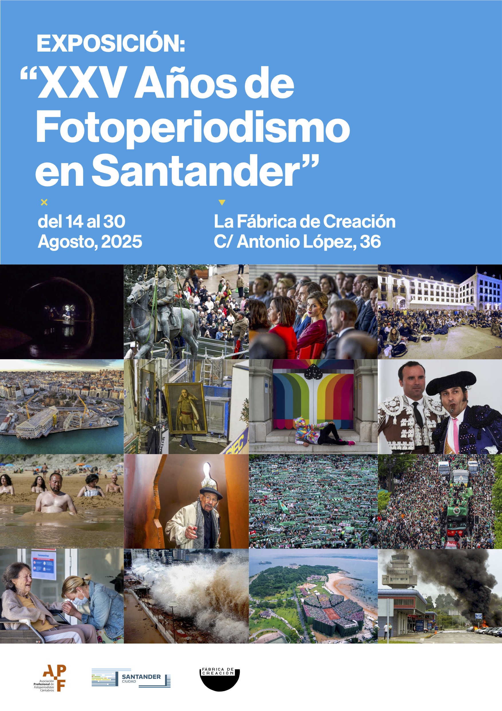 La Fábrica de Creación, espacio municipal del Ayuntamiento de Santander diseñado para acoger y visibilizar a artistas que estén desarrollando un proyecto de artes escénicas, plásticas o audiovisuales, acogerá del 14 al 30 de agosto la exposición XXV años de Fotoperiodismo en Santander organizada por la Asociación Profesional de Fotoperiodistas de Cantabria.