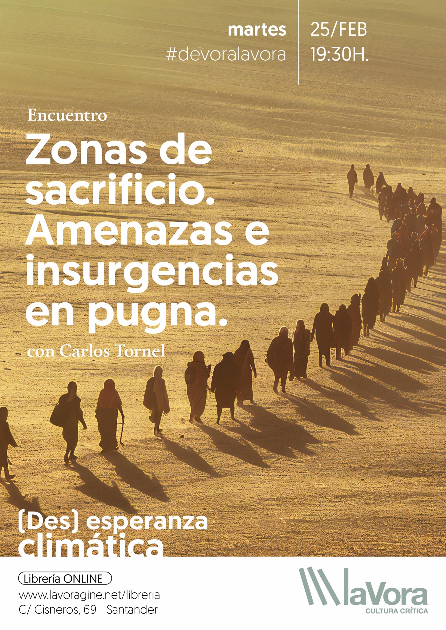 La Vorágine abre el primer ciclo de crisis climática para abordar las zonas de sacrificio y los megaproyectos de energías renovables con un acercamiento conceptual aterrizado a la zona de Cantabria. Contarán para ello con la presencia online de Carlos Tornel, para hablar de lo que significa ser definida como zona de sacrificio, las amenazas que comporta para los territorios y las respuestas que existen en México. Términos como crecimiento verde, desarrollo sustentable y demás conceptos que más que soluciones para hacer frente a la crisis climática son un irremediable oxímoron para seguir replicando prácticas capitalistas y extractivistas, nos hacen cuestionarnos sobre los territorios, la descarbonización y la transición energética justa.