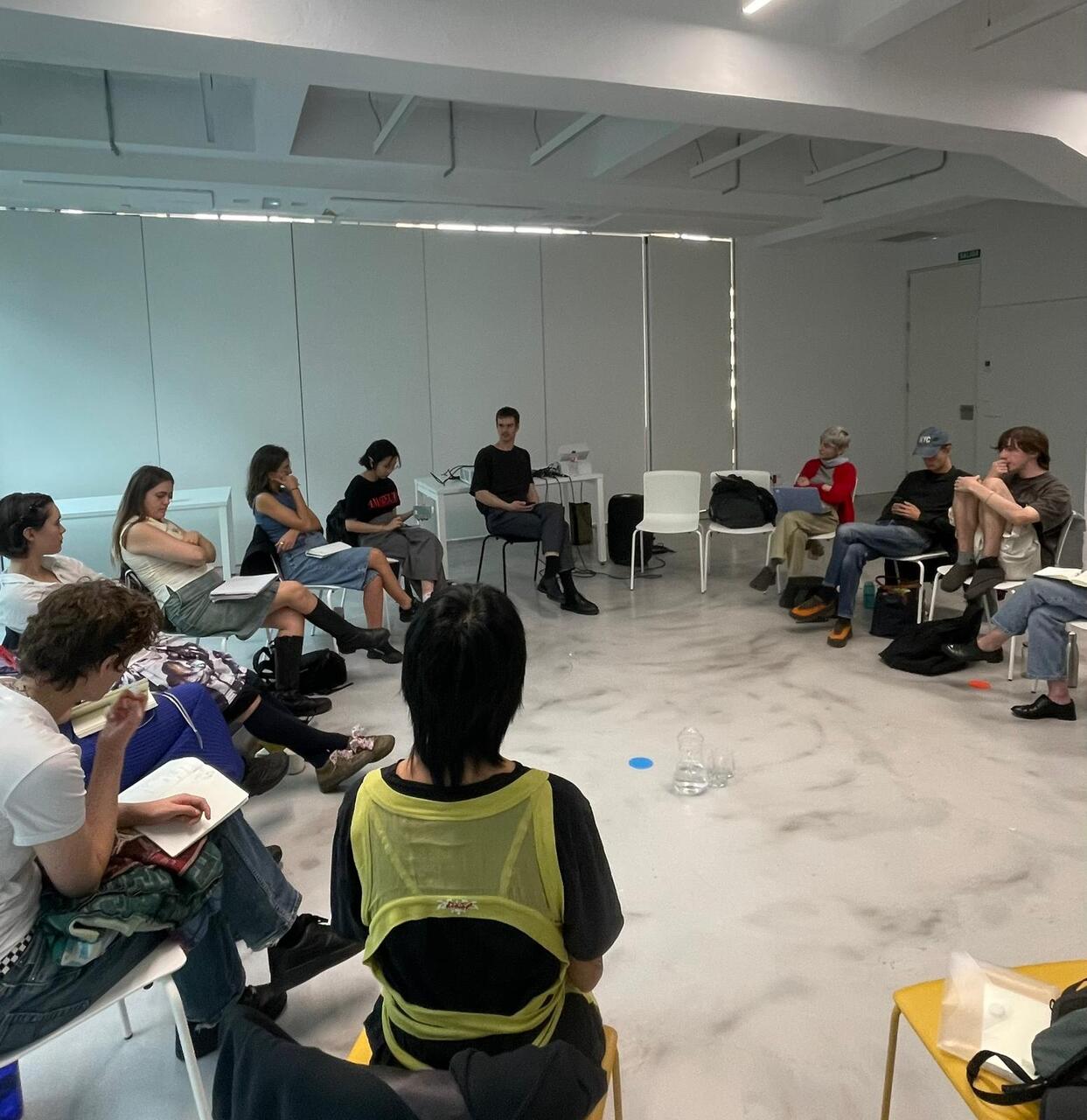 *Imágenes cortesía de fluent: 1.Fotograma de una de las obras de la cineasta palestina Shuruq Harb. 2.Sesión de PRAXIS con el teórico de la arquitectura Pol Esteve Castelló. 3. Sesión de PRAXIS junto a Reece Cox. 4. Participantes de PRAXIS junto al poeta CAConrad.