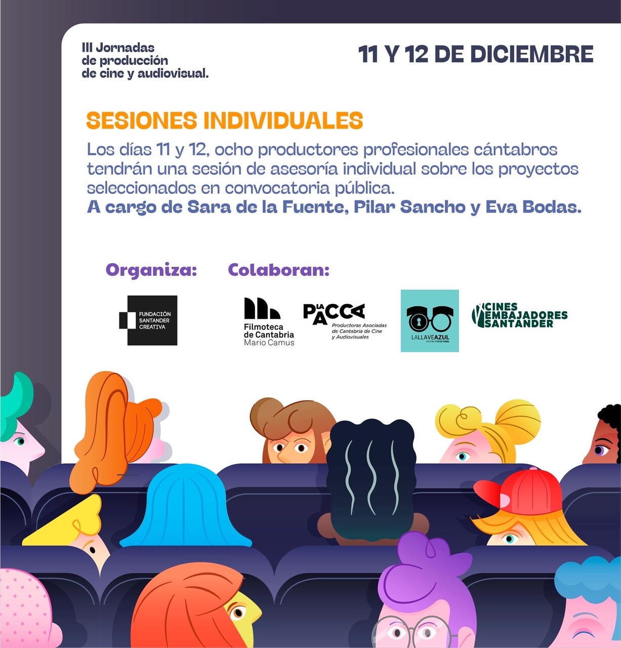 El programa se trasladará a la Filmoteca de Cantabria Mario Camus y allí, a las 10:30 horas, se celebrará “Diálogos sobre producción audiovisual”, un encuentro abierto al público y dirigido por Nacho Solana junto a las tres productoras invitadas: Sara de la Fuente, Pilar Sancho y Eva Bodas.