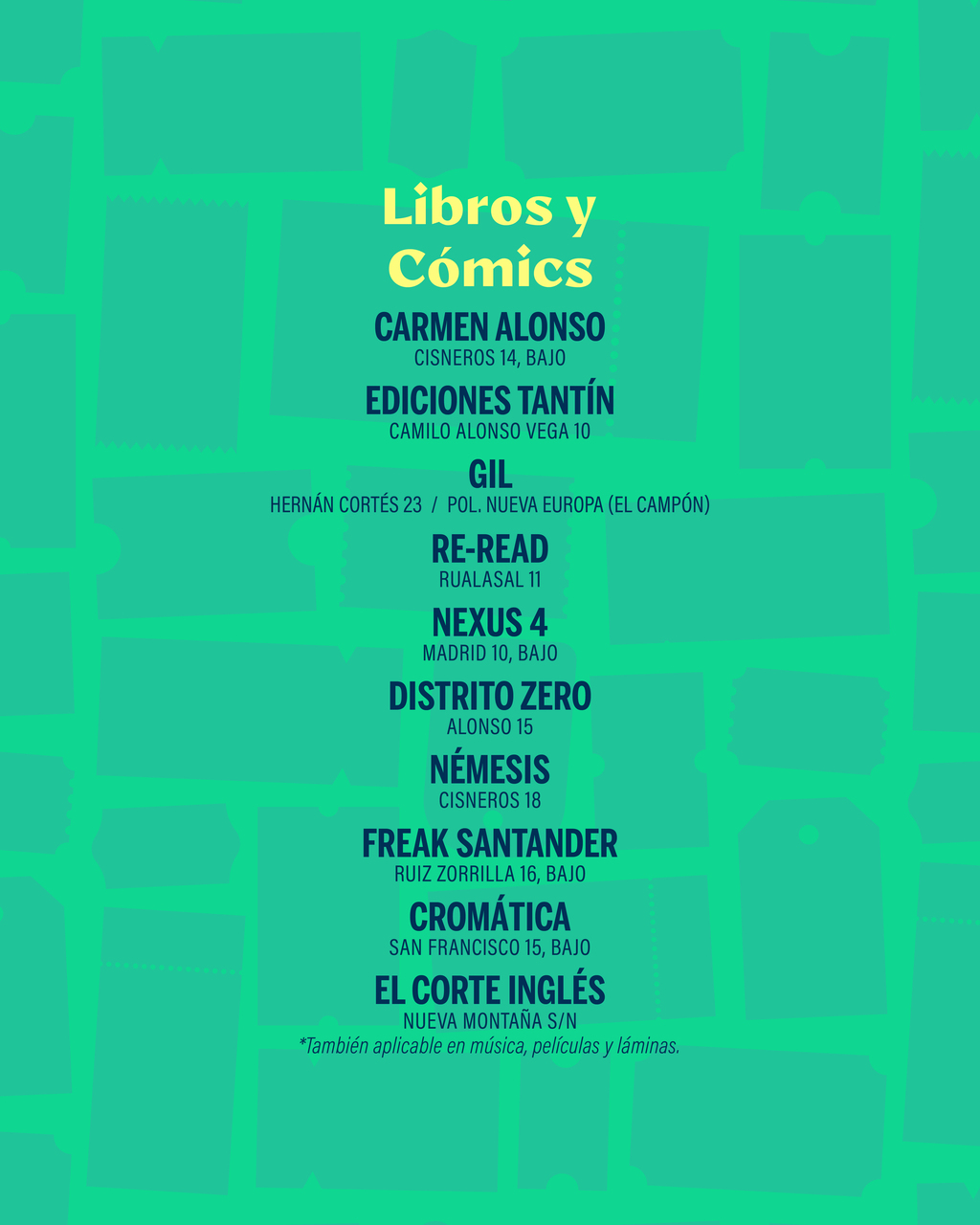Este año se han unido a la campaña un total de treinta empresas y profesionales del sector. De esos treinta, nueve se han incorporado por primera vez. En concreto, el bono se puede canjear para adquirir libros y cómics en Freak Santander, una tienda de coleccionismo friki que abrió sus puertas en la calle Ruiz Zorrilla hace apenas dos meses.