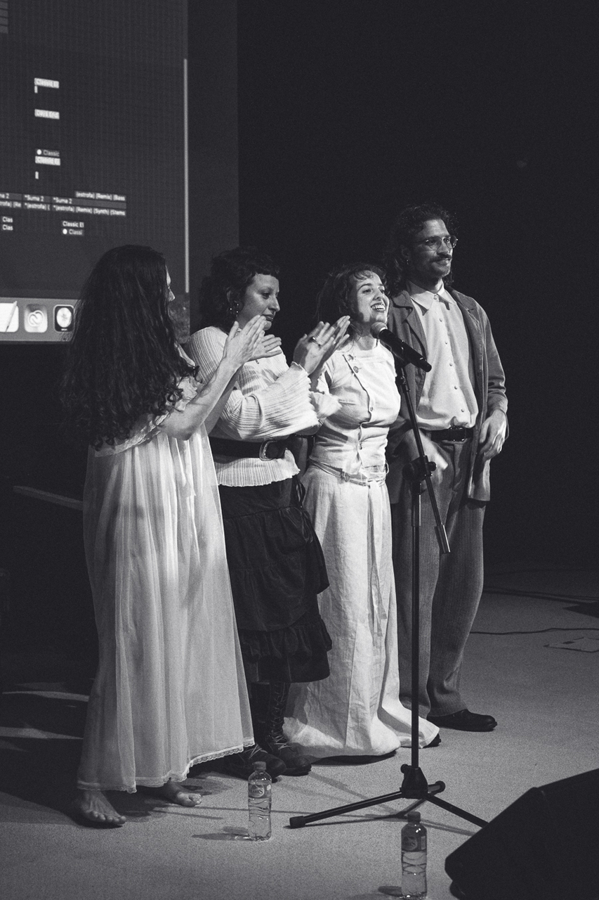 Saiz animó al público con su particular forma de interpretar canciones montañesas de toda la vida, su versatilidad y el cariño y cuidado que dedica a su arte. A finales de noviembre, el día 27, Excéntricos concluyó en Casyc_UP con el “hipnótico, orgánico y mágico” espectáculo de DABELHA, artista y productora de Torrelavega. Acompañada por Pedro Buisán a la guitarra, la violinista Alegría Loayza y la danza de la coreógrafa Irati Pineda, DABELHA compartió con los asistentes una propuesta que fue más allá de lo musical, una experiencia “viva” y “ceremonial”.