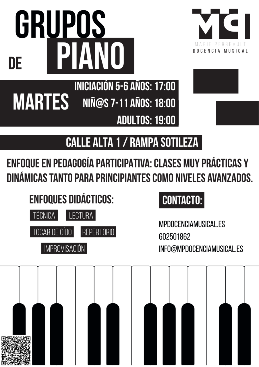 Nuevo curso de iniciación a la música impartido por Marie Perrault los miércoles, a partir del 1 de octubre 2025 y hasta junio 2026 en Espacio Miriñaque (Calle Isaac Peral, 9).