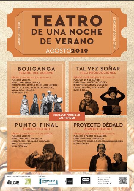 29 de julio de 2019.La séptima edición de "Teatro de una noche de verano", la iniciativa diseñada por Hilo Producciones y Ábrego para dinamizar las noches estivales a través de nuevas propuestas escénicas, se instalará en Enclave Pronillo, la sede de la Fundación Santander Creativa (FSC), a partir del próximo sábado -3 de agosto-.