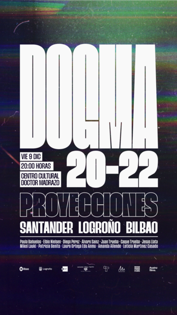 30 de noviembre de 2022.El proyecto colaborativo Dogma 20-22 presentará sus creaciones, un total de tres piezas audiovisuales, en el Centro Cultural Madrazo el próximo 9 de diciembre en un encuentro con los participantes del proyecto: Paula Bañuelos, de Media Attack; Diego Pergo, de Films y Juan y Caque Trueba, de Trueba&Trueba.