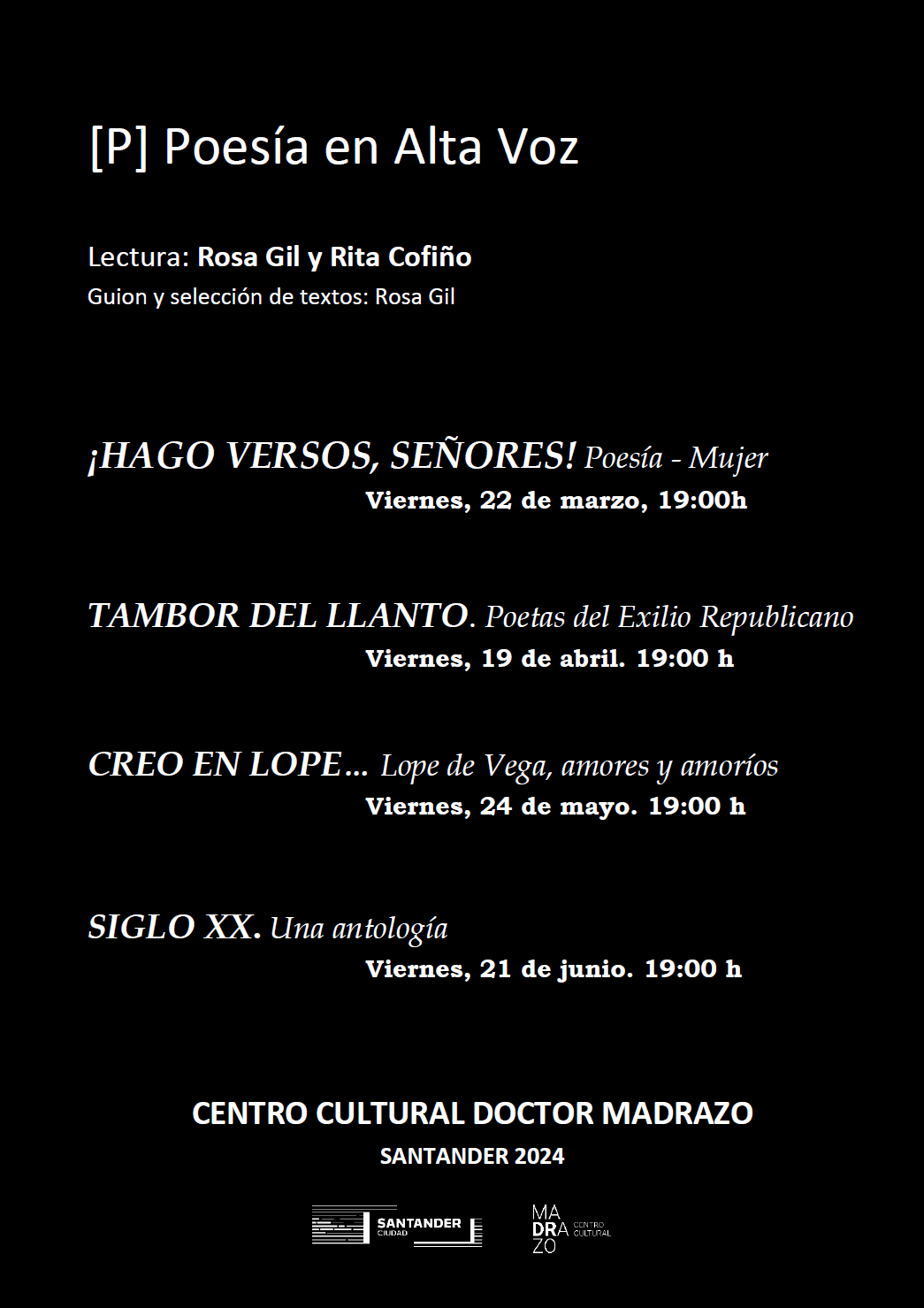 Entre los meses de marzo y junio tendrá lugar, en el Centro Cultural Dr. Madrazo, un nuevo ciclo de Poesía en Alta Voz a cargo de Rosa Gil y Rita Cofiño, que constará de cuatro veladas.