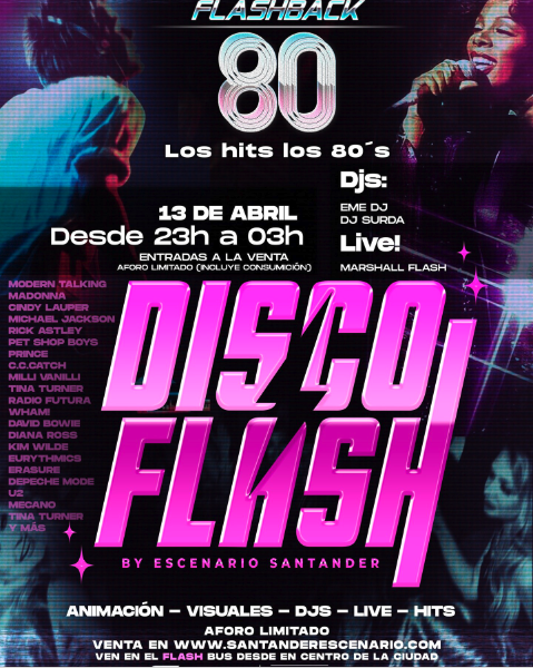 ¡Llega el FLASH BUS a Disco Flash en Escenario Santander por solo 1€!