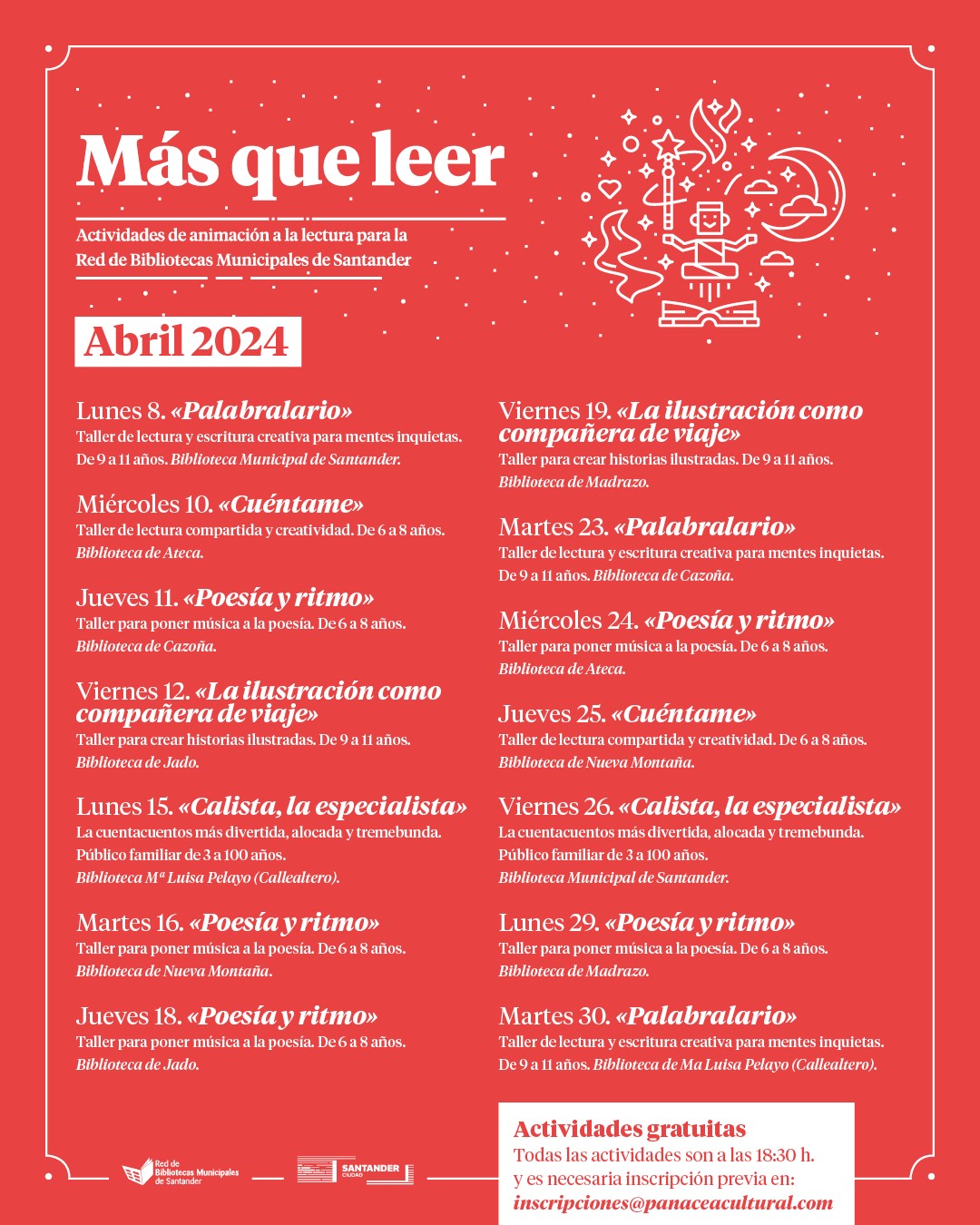 El Ayuntamiento de Santander presenta el nuevo programa de dinamización de la red municipal de bibliotecas, que bajo el título ‘Más que leer’ se desarrollará en todas las bibliotecas entre el 8 de abril y el 13 de junio, con actividades de animación lectora diseñadas especialmente para público infantil y familiar.