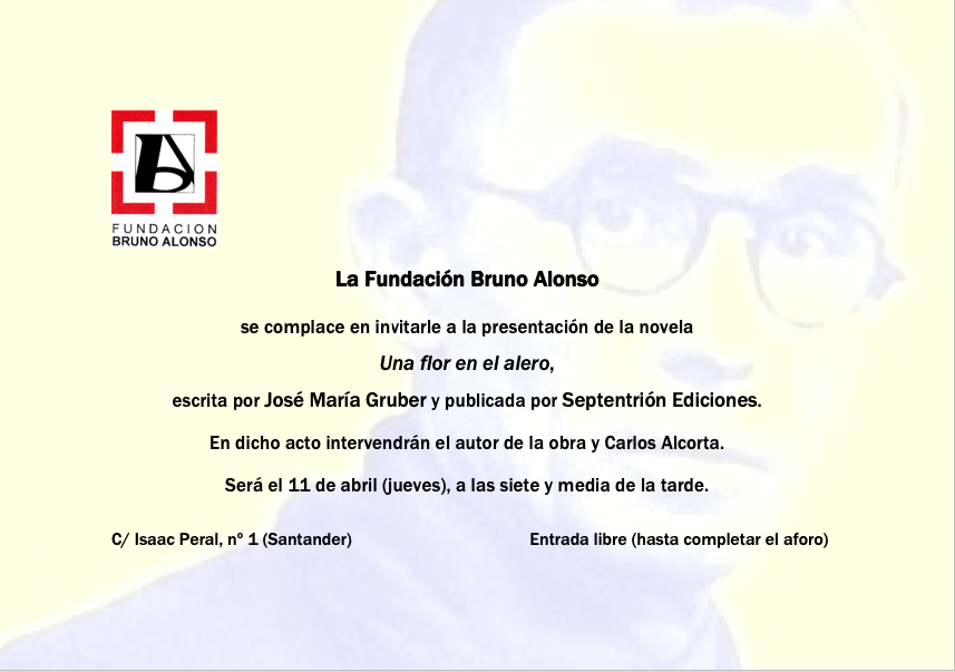 La Fundación Bruno Alonso acoge la presentación de la novela “Una flor en el alero”, escrita por José María Gruber y publicada por Septentrión Ediciones.
