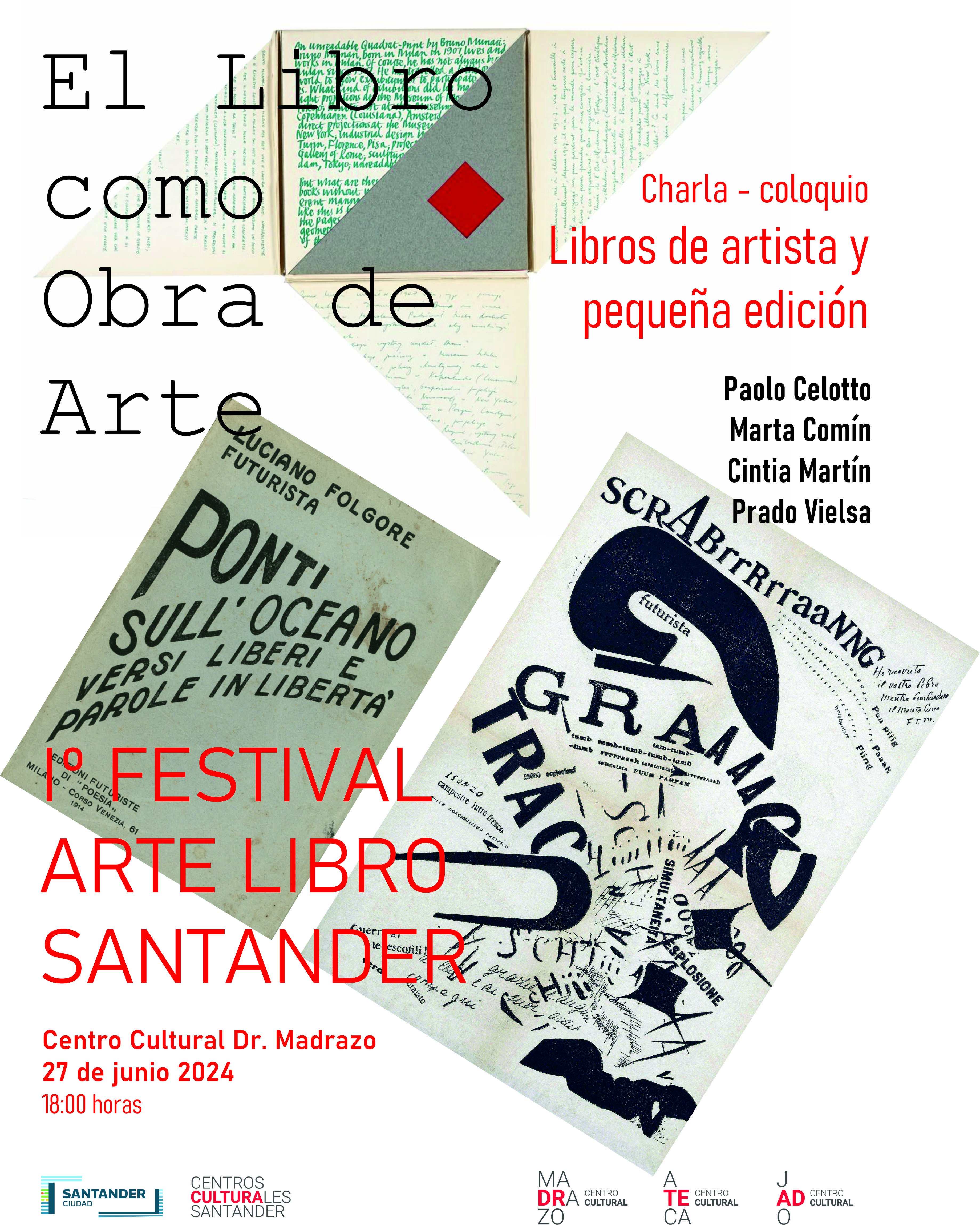 El jueves 27 de junio en el Centro Cultural Dr. Madrazo a las 18 horas se pondrá punto final al primer Festival Arte Libro de Santander de Cultura Santander con una charla coloquio sobre "Libros de artista y pequeña edición".