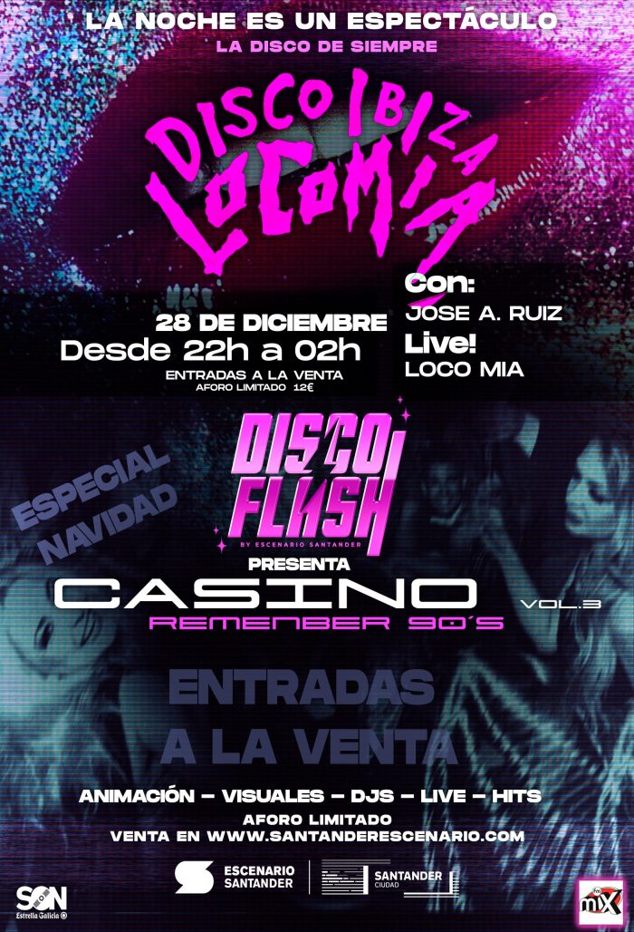 Escenario Santander despedirá el año de conciertos el sábado, 28 de diciembre, a ritmo de los abanicos de Locomía, que serán los artistas invitados a una nueva edición de las fiestas que la sala organiza recuperando el ambiente que se vivía en los años 80 y 90 en la desaparecida Discoteca Casino de Solares.
