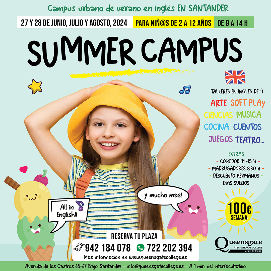 Campus en inglés “Summer Campus 2024” para niños y niñas de 2 a 12 años los días 27 y 28 de junio y durante los meses de julio y agosto. Clases de cocina con recetas divertidas, talleres de arte y teatro, experimentos en ciencias y juegos y talleres de música son algunas de las actividades que se desarrollarán durante el campus.