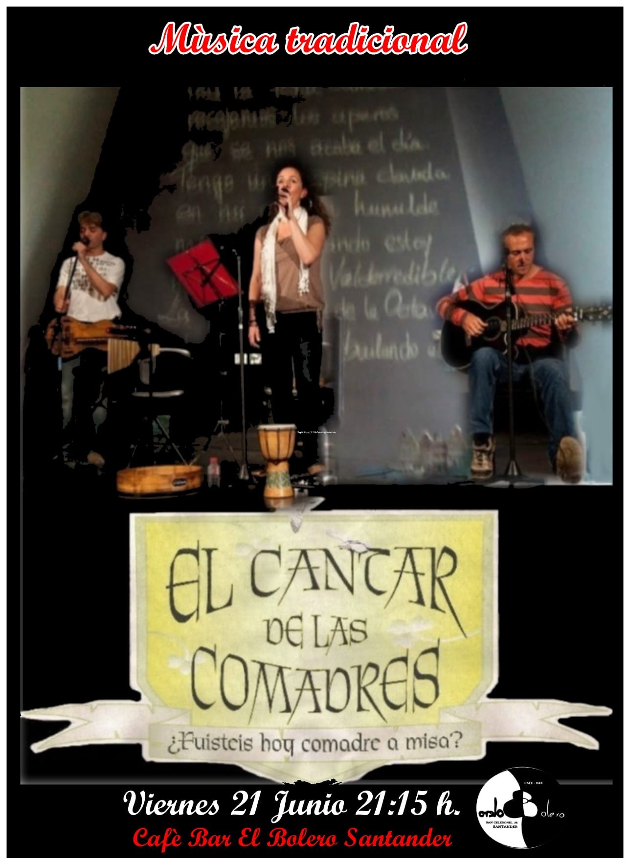 El viernes 21 de junio, a las 21:15 h, el Café/Bar Bolero acogerá un concierto de música tradicional a cargo de El Cantar de las Comadres.