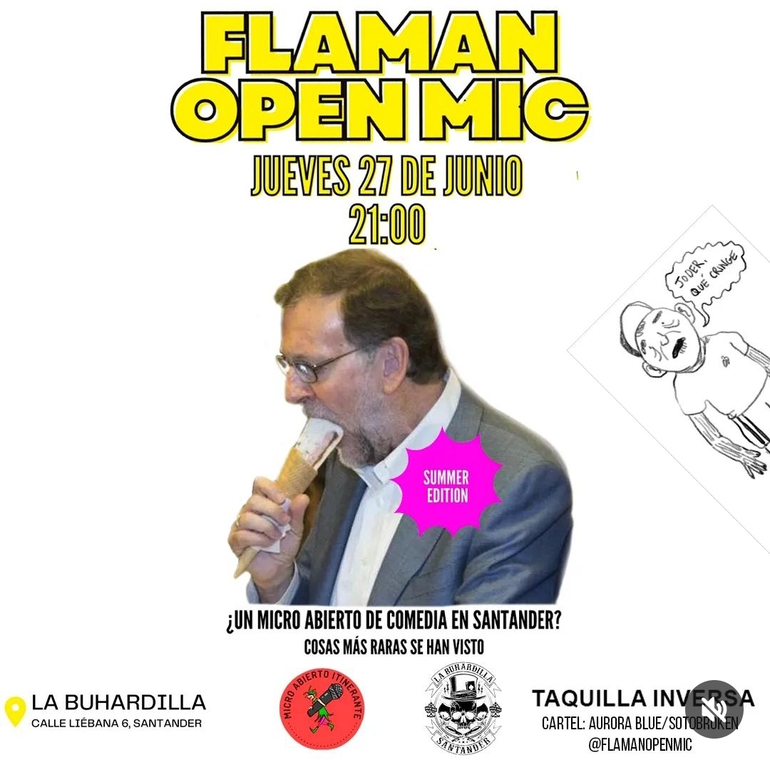 Flaman Open Mic en La Buhardilla (C/Liébana, 6) el jueves 27 de junio a las 21:00 h.