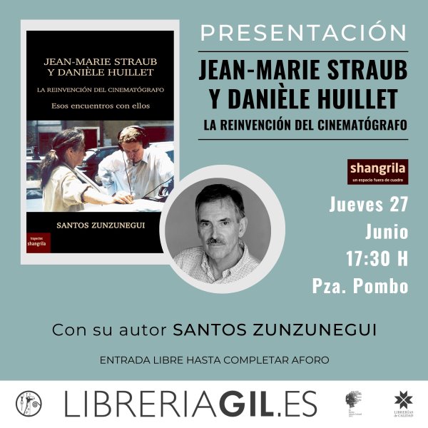 El jueves 27 de junio a las 17:30 h. en la Librería Gil de la Plaza de Pombo tendrá lugar la presentación de "Jean-Marie Straub y Daniéle Huillet. La reinvención del cinematógrafo. Esos encuentros con ellos", de Santos Zunzunegui (Editorial Shangrila).