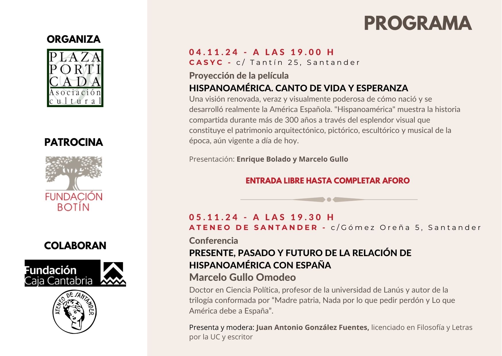 Entrada libre hasta completar el aforo.