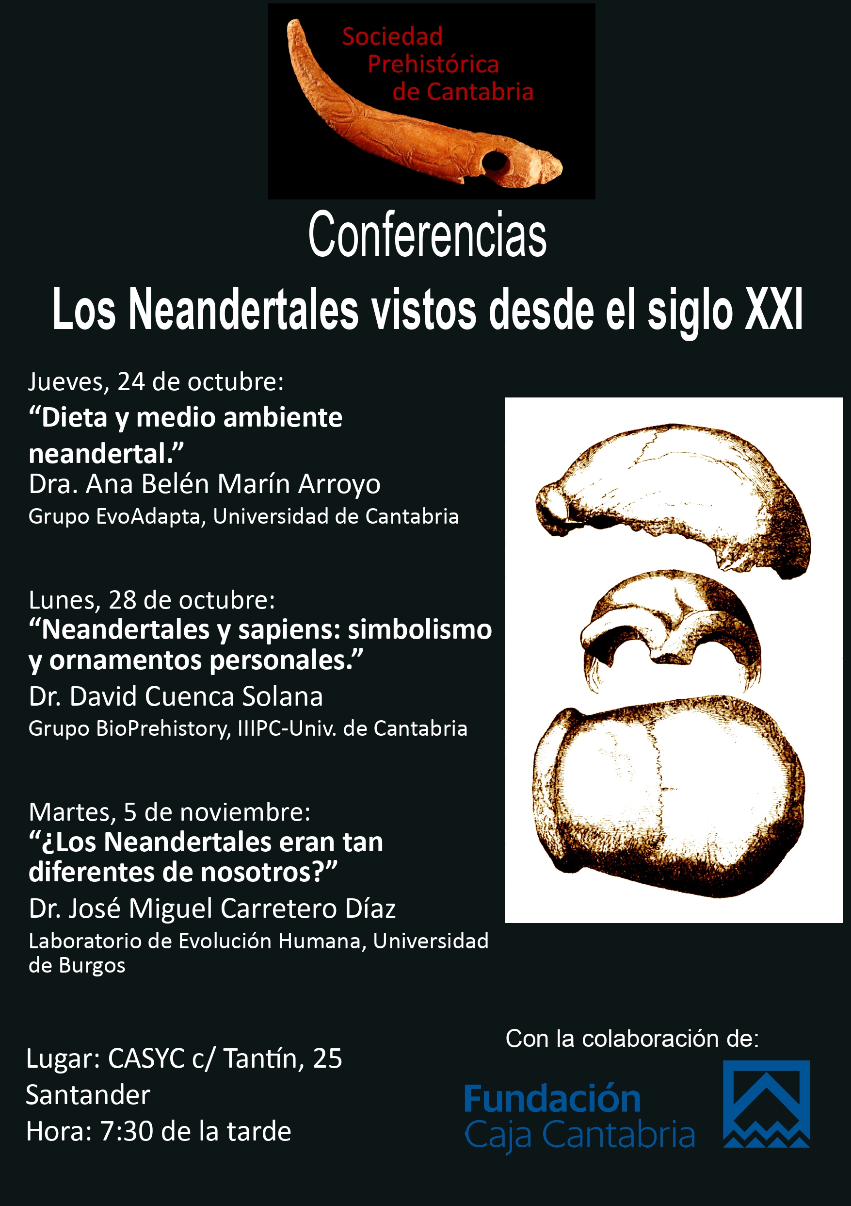 La Sociedad Prehistórica de Cantabria organiza el ciclo de conferencias “Los neandertales vistos desde el siglo XXI”. Las charlas se celebrarán en Casyc, a las 19:30h, con entrada libre hasta completar el aforo.