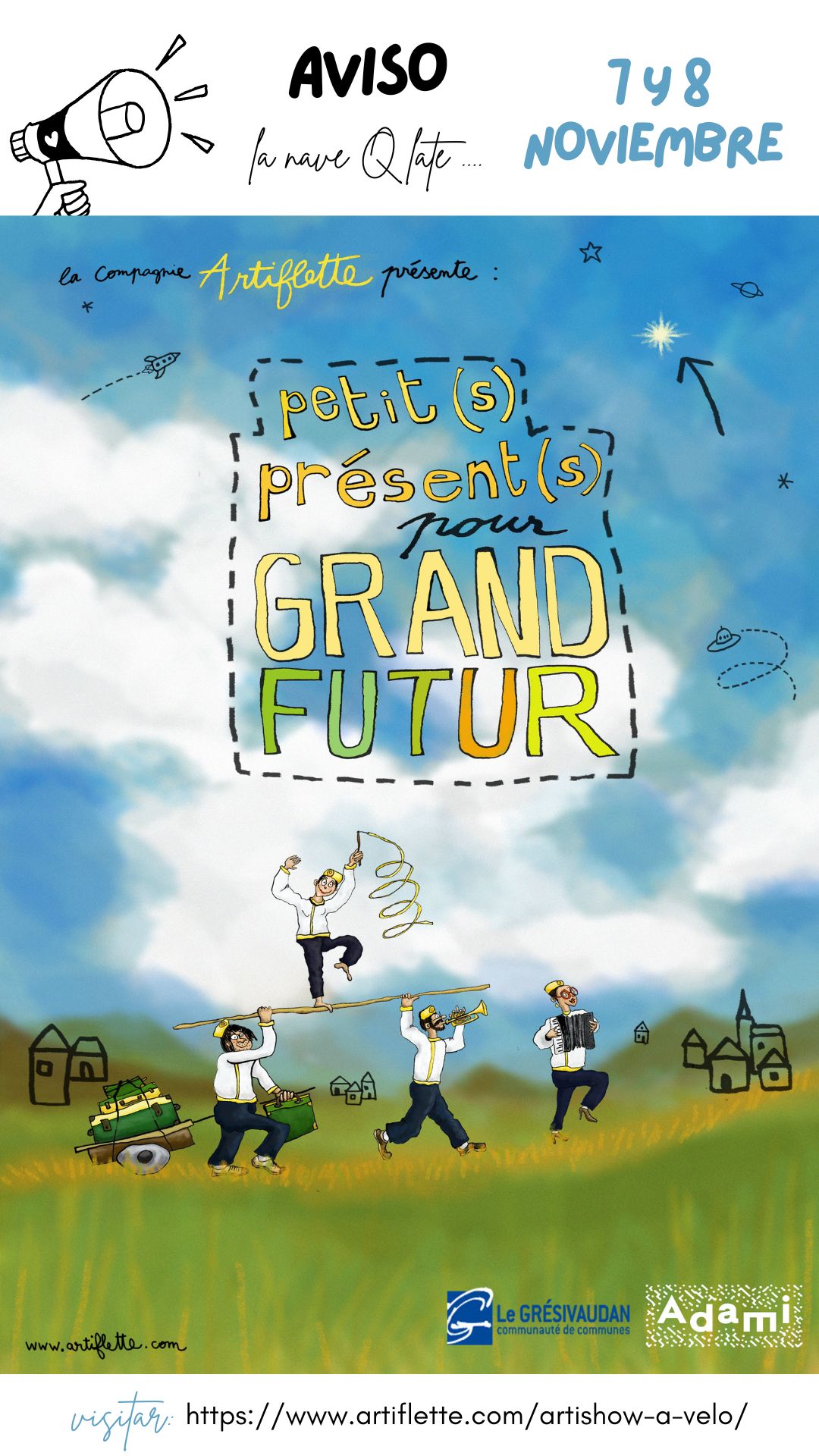 La compañía Artiflette está de gira en bicicleta por Francia, Inglaterra y España. Descubre su espectáculo "Petit(s) présent(s) pour grand futur" ("Pequeños presentes para un gran futuro") los días 7 y 8 de noviembre en La Nave Que Late.