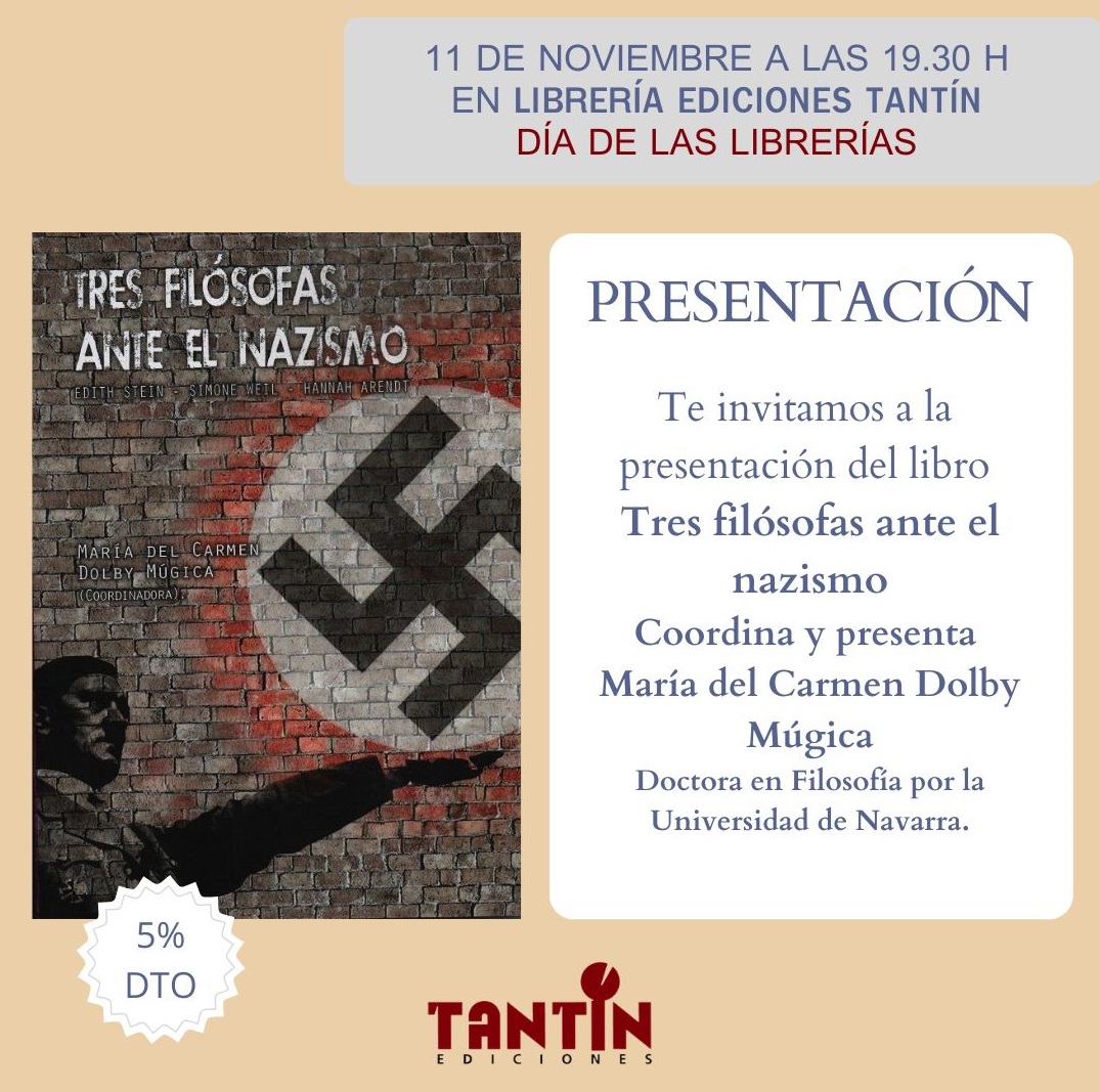 Para celebrar el Día de las Librerías, Ediciones Tantín acoge la presentación del libro "Tres filósofas ante el nazismo", coordinado por la profesora María del Carmen Dolby Múgica.