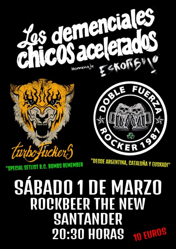 A la gira de Turbo Fuckers "Basque Country Fvckers 2025" se suman Doble Fuerza desde Argentina, pero con base en Bilbao, y en plena presentación de su LP "1987" editado por Guns of Brixton Records, con un setlist lleno de clásicos de todas las épocas de la banda.