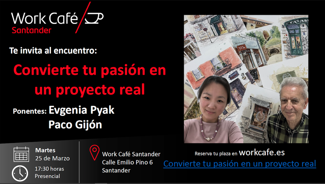 Los ilustradores Evgenia Pyak y Paco Gijón estarán el martes 25 de marzo a las 17:30h en el Work Café Santander (C/Emilio Pino, 6) para presentar su proyecto de Drawing Santander, dibujando rincones de Santander.